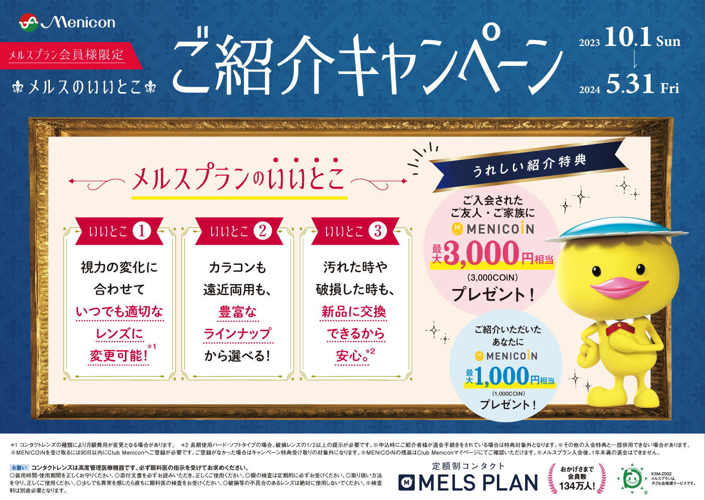 ご紹介者様に1,000MENICOiN がプレゼントされます!!