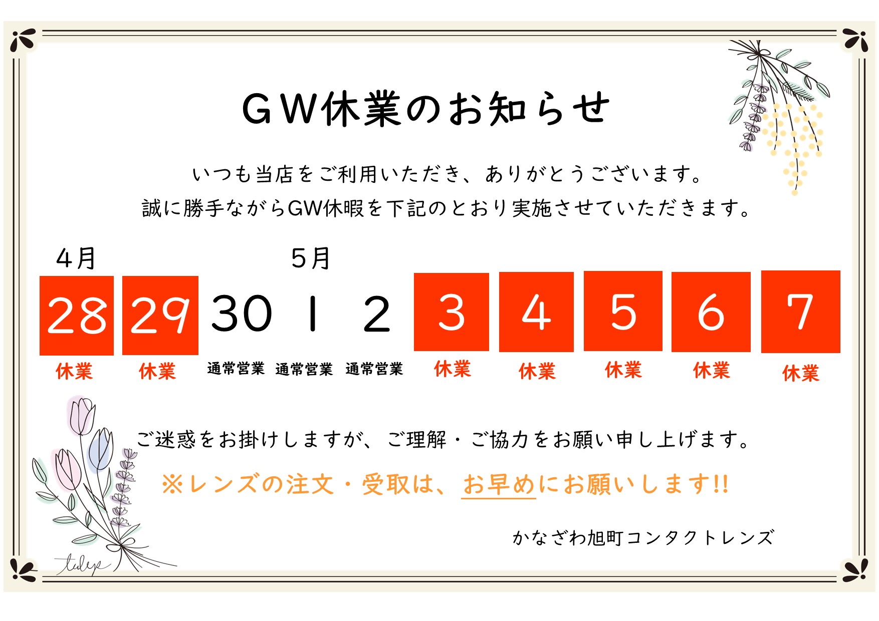 GW期間中は下記日程にて当店、隣接眼科ともに休業となります。
